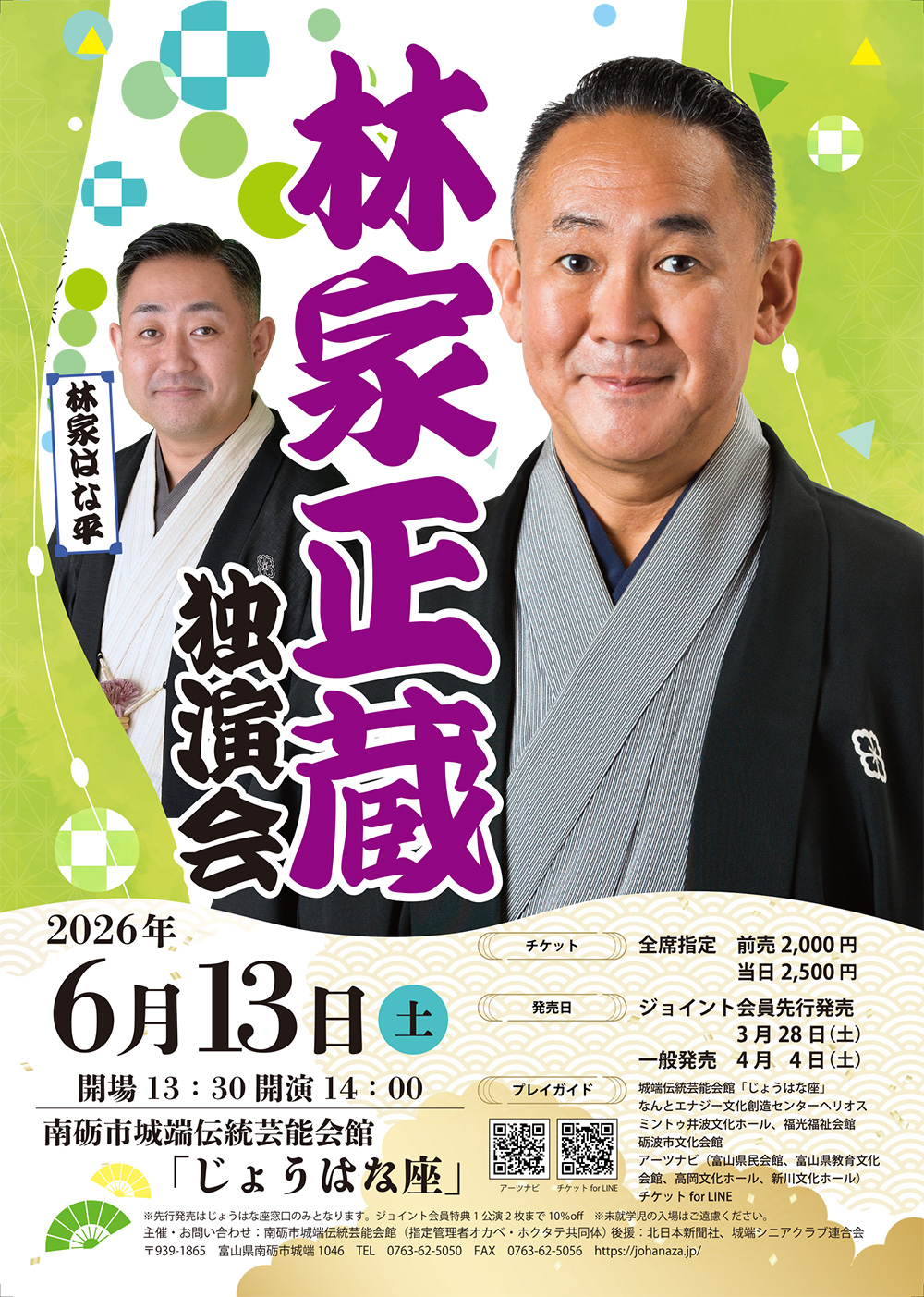| 詳細 | 人気落語家、林家正蔵の独演会。円熟味を増した名人芸をご堪能ください。 |